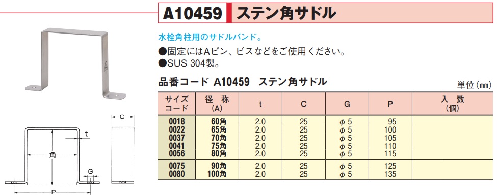 アカギ ステン角サドル 65カク