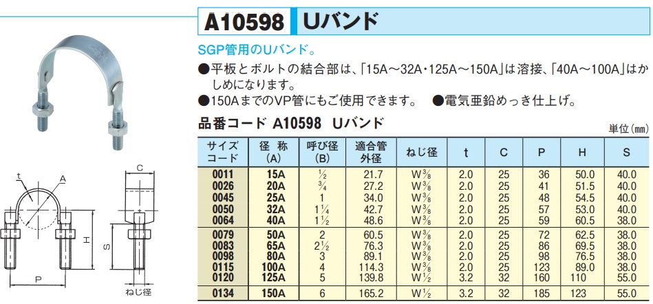 アカギ Uバンド W3/8X15A
