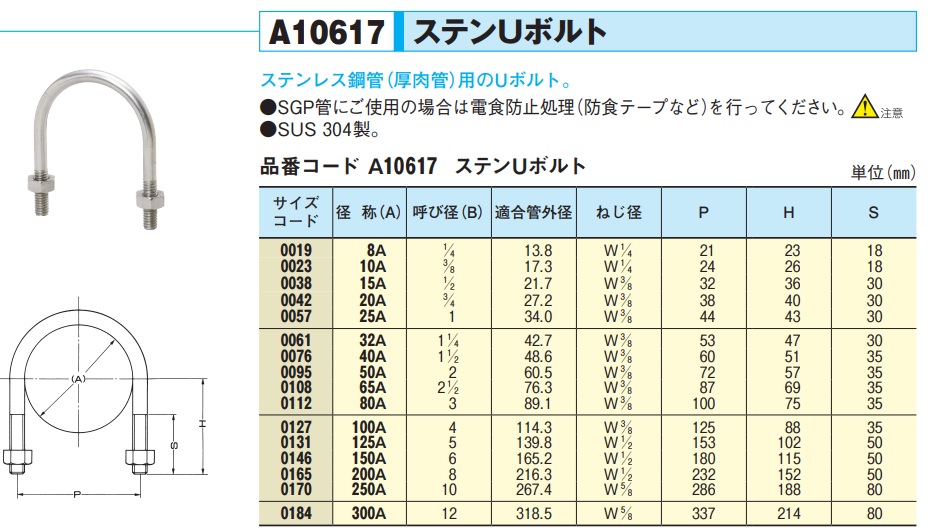 アカギ ステンUボルト W3/8X15A