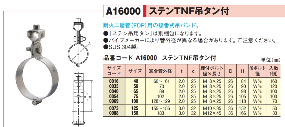 アカギ ステンTNF吊タン付 W3/8-100A