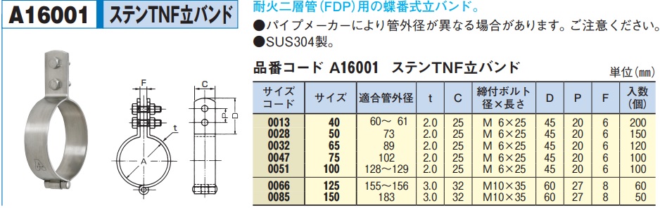 アカギ ステンTNF立バンド 125A