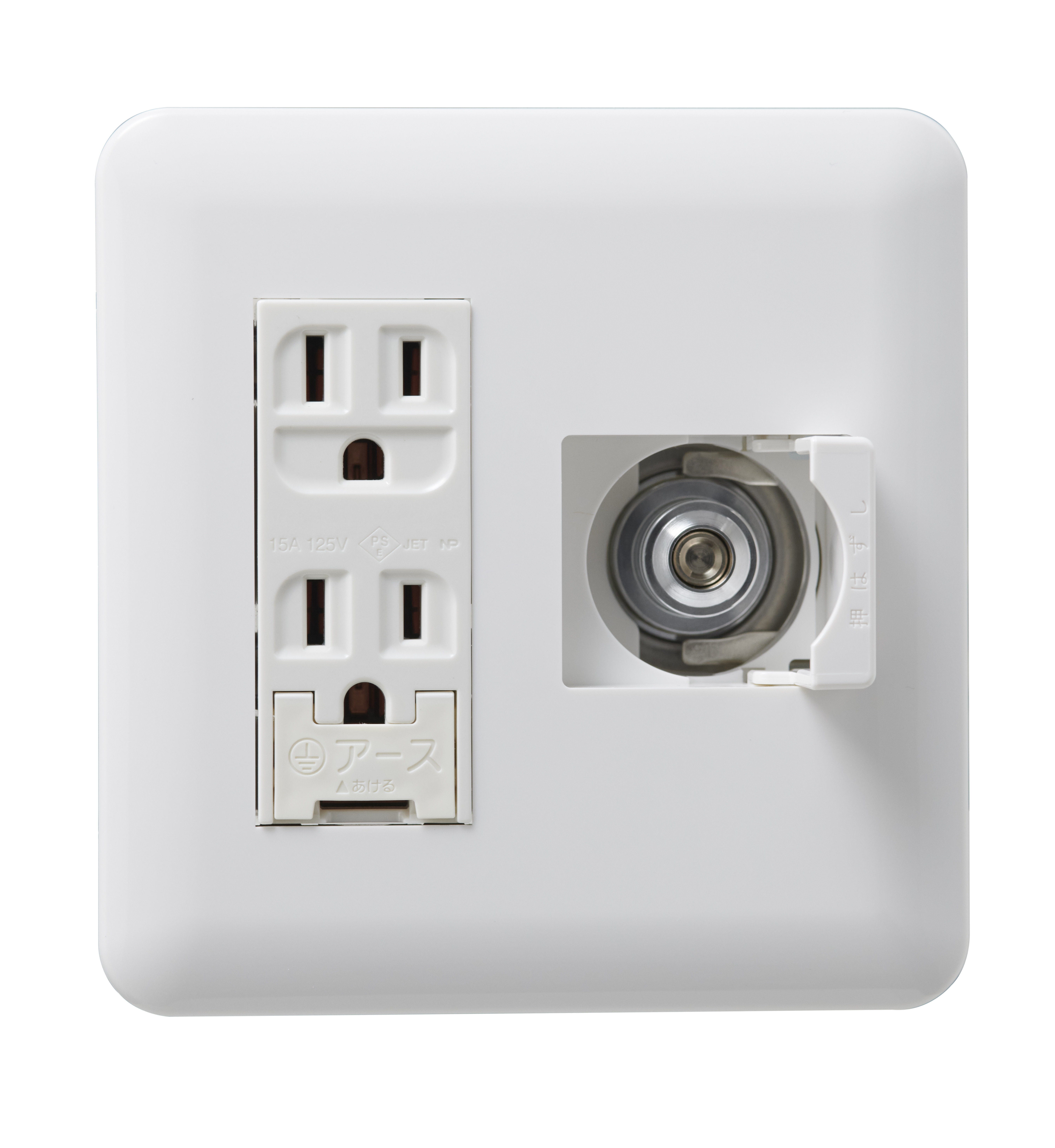 固定部材、化粧プレート、電気二口コンセントが同梱されています。