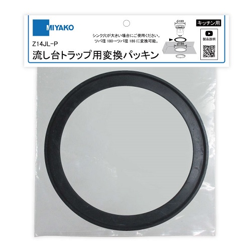 ミヤコ 流し台トラップ用変換パッキン Z14JL-P 180-186